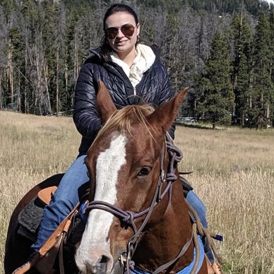 Pam enjoys riding and training her horses, Juan Carlos and Ella, in various forms of natural horsemanship.
